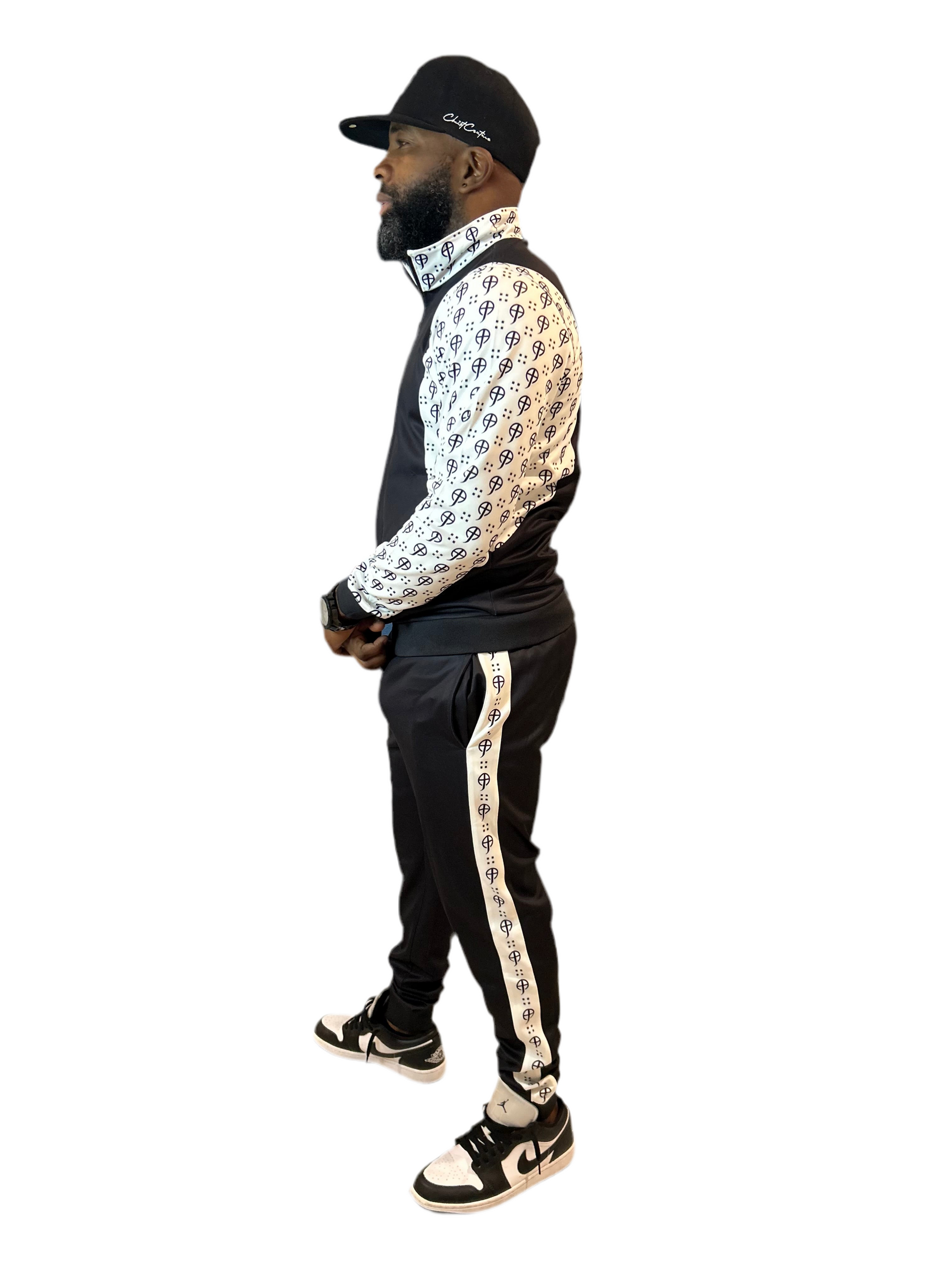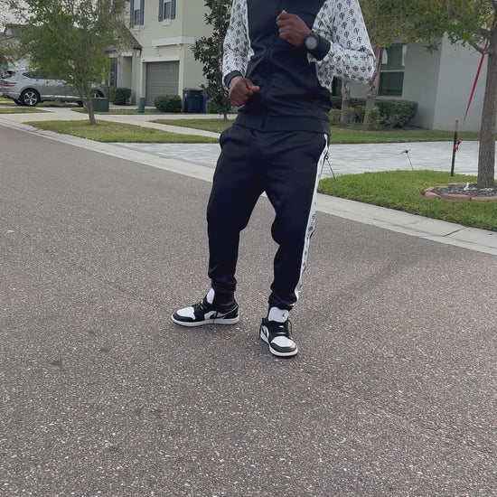 Elevate your athletic style with this sleek and modern Christian Black Tracksuit. Crafted for both comfort and fashion, this tracksuit features a minimalist black design accented by bold white logos. The jacket is adorned with multiple white logos, adding a touch of premium branding to your look. The sides of the pants are also emblazoned with a striking white logo for a unified, standout appearance.