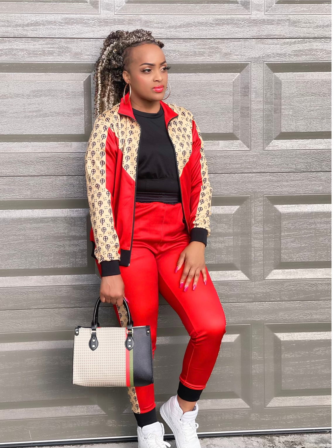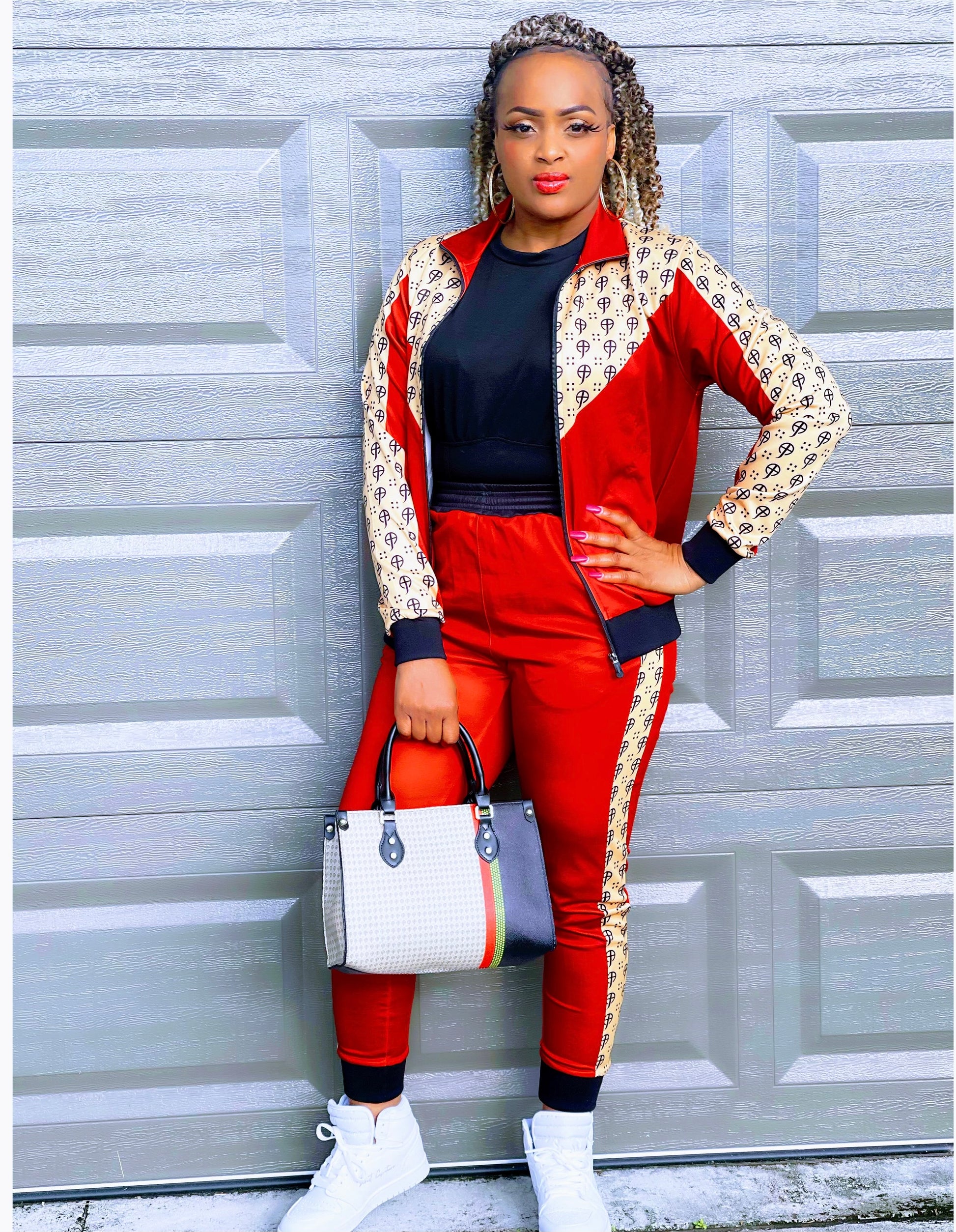 Stripe logo detail on sides to the side of the pants; Fitted cuffs on bottom and jogger top * BAG NOT INCLUDED *
