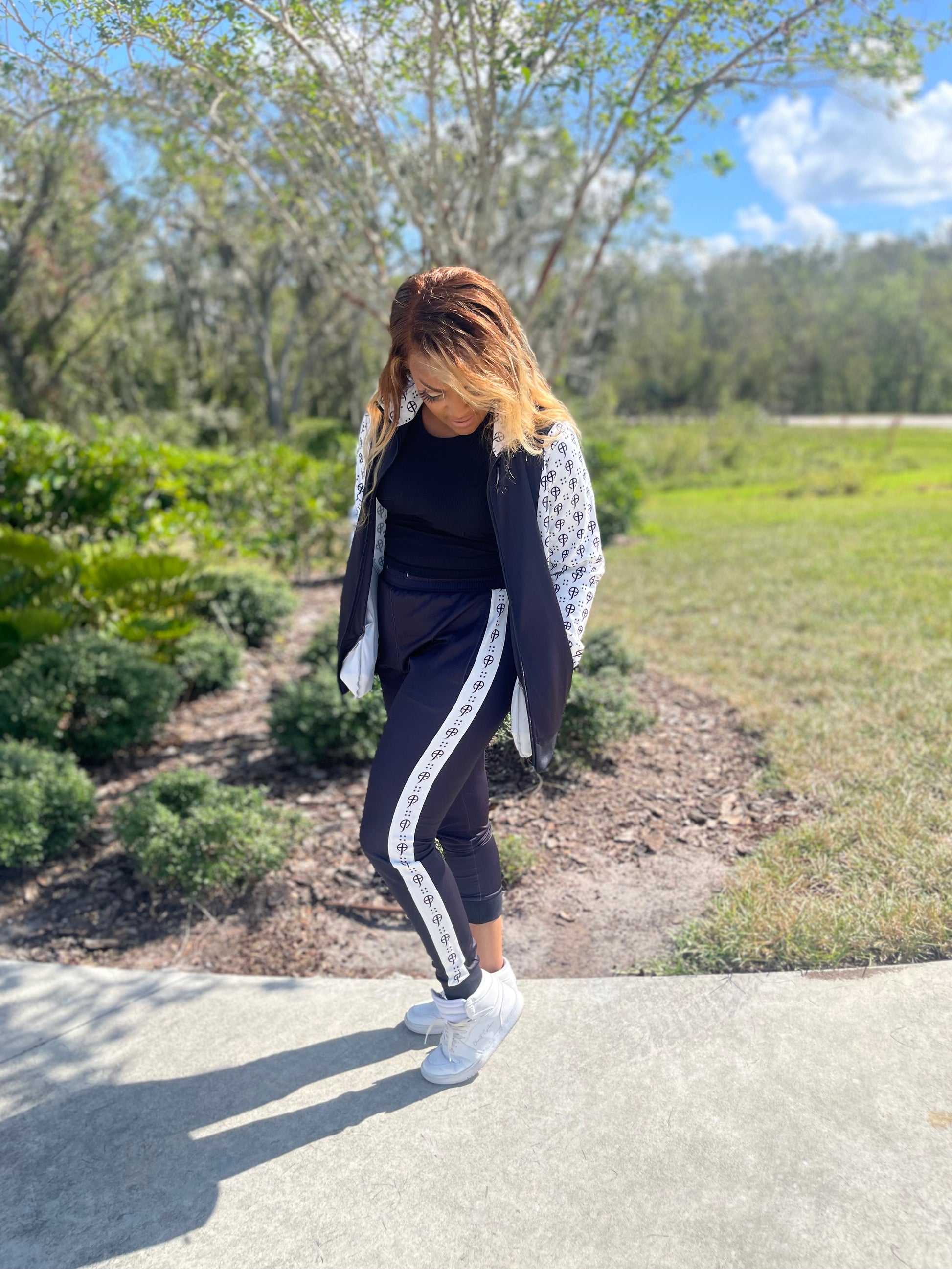 Elevate your athletic style with this sleek and modern Christian Black Tracksuit. Crafted for both comfort and fashion, this tracksuit features a minimalist black design accented by bold white logos. The jacket is adorned with multiple white logos, adding a touch of premium branding to your look. The sides of the pants are also emblazoned with a striking white logo for a unified, standout appearance.
