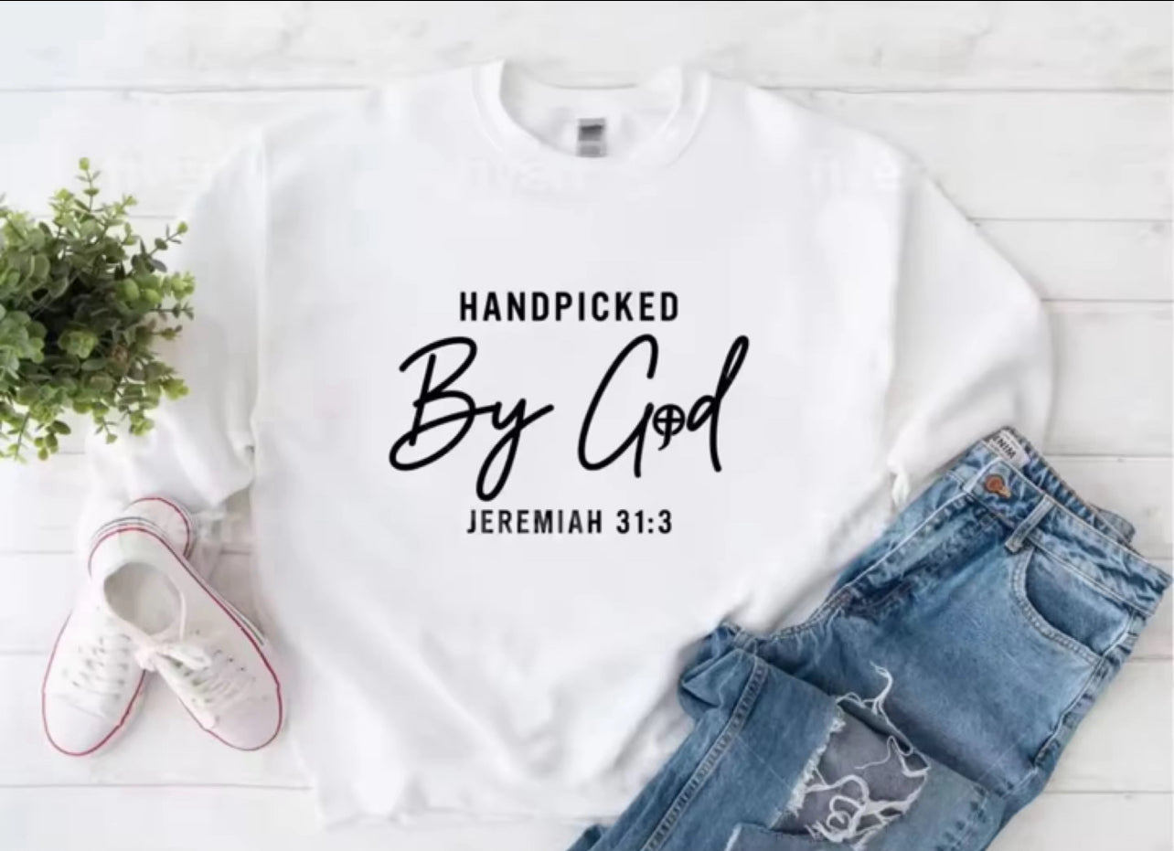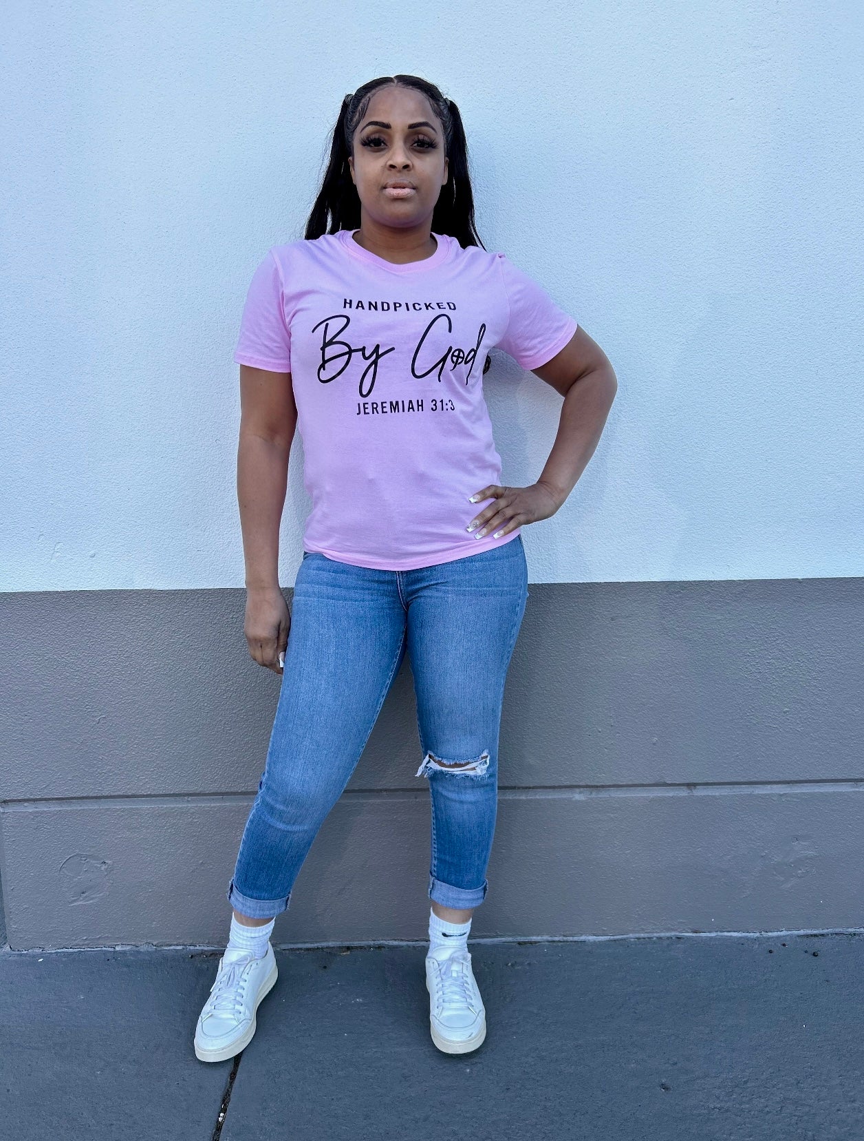 Celebrate your unique purpose with the "Handpicked by God" t-shirt. Made from soft, breathable fabric, this shirt serves as a reminder that you are chosen and valued by a higher power. Its bold, inspiring message makes a statement while keeping you comfortable throughout your day. Whether you're wearing it for a casual outing or as a conversation starter, this t-shirt serves as a beautiful expression of faith and self-worth.