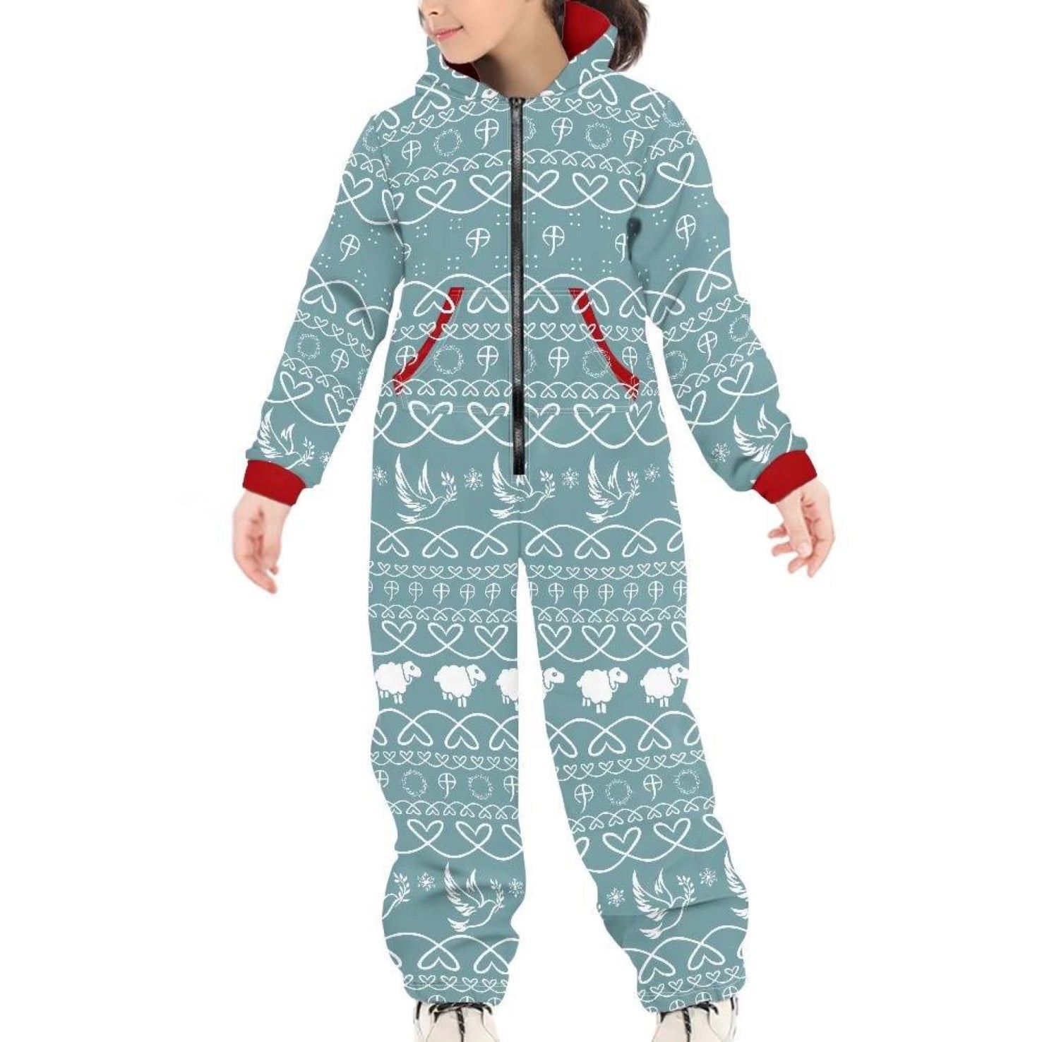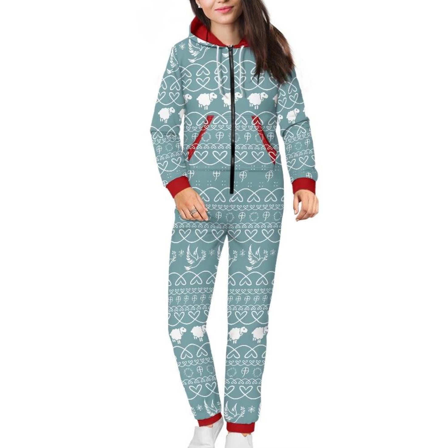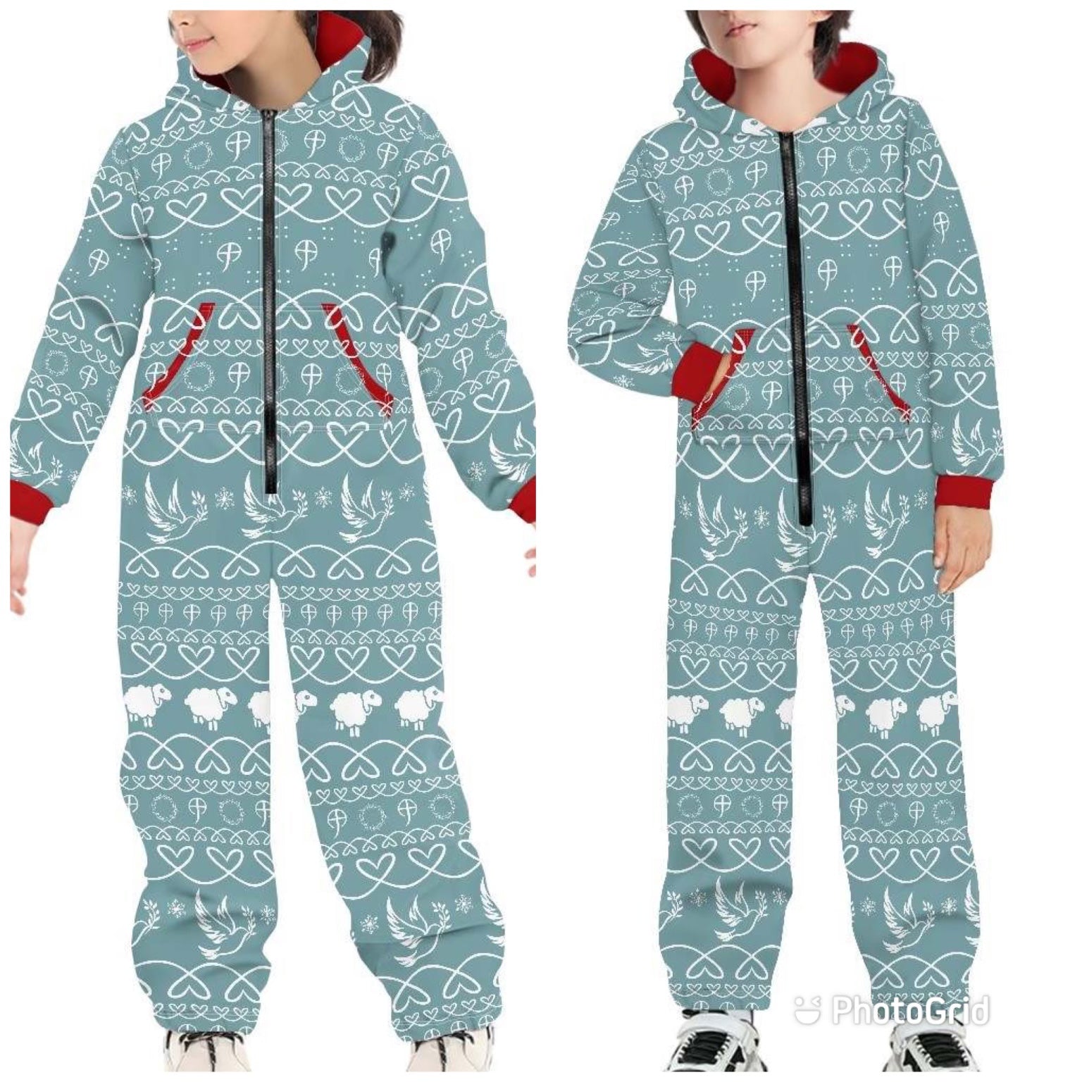 Christmas Jumpsuit Pajama sets with Sheep & Dove (Turquoise )