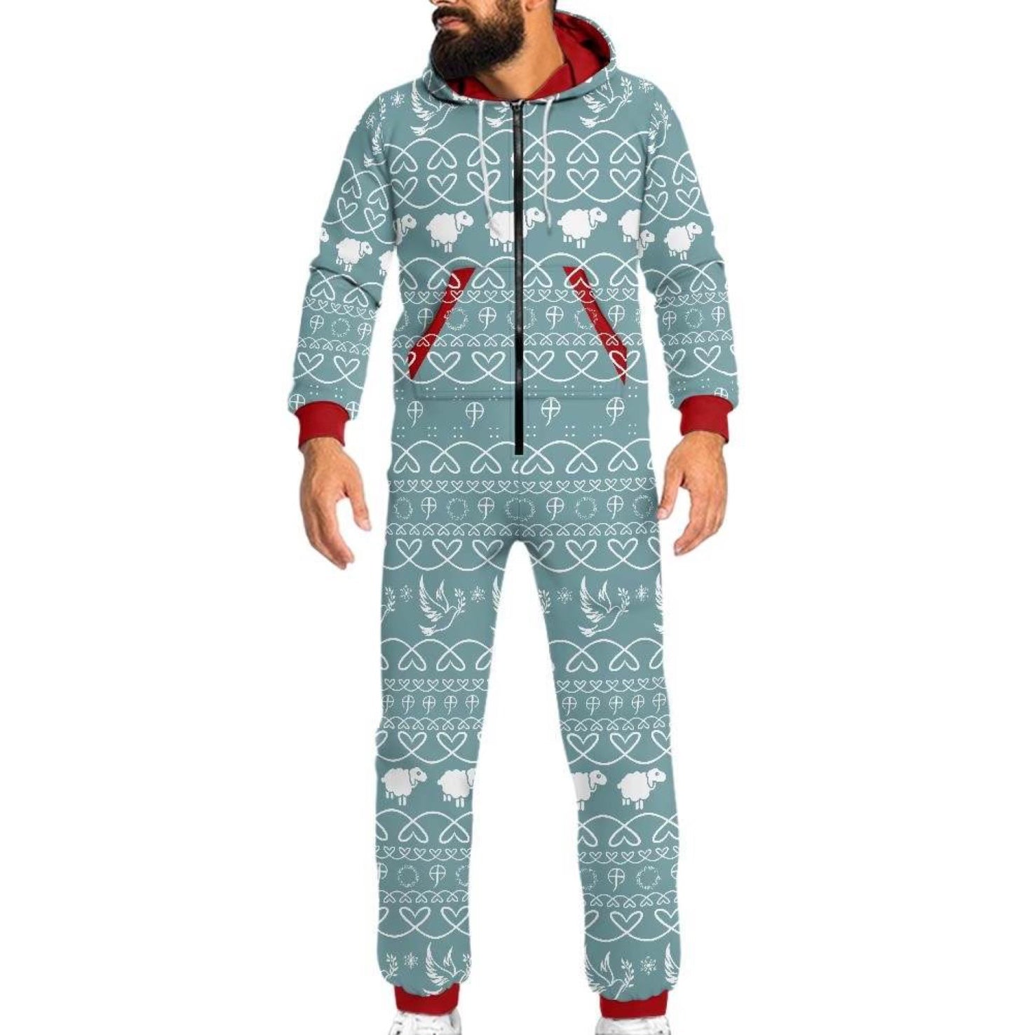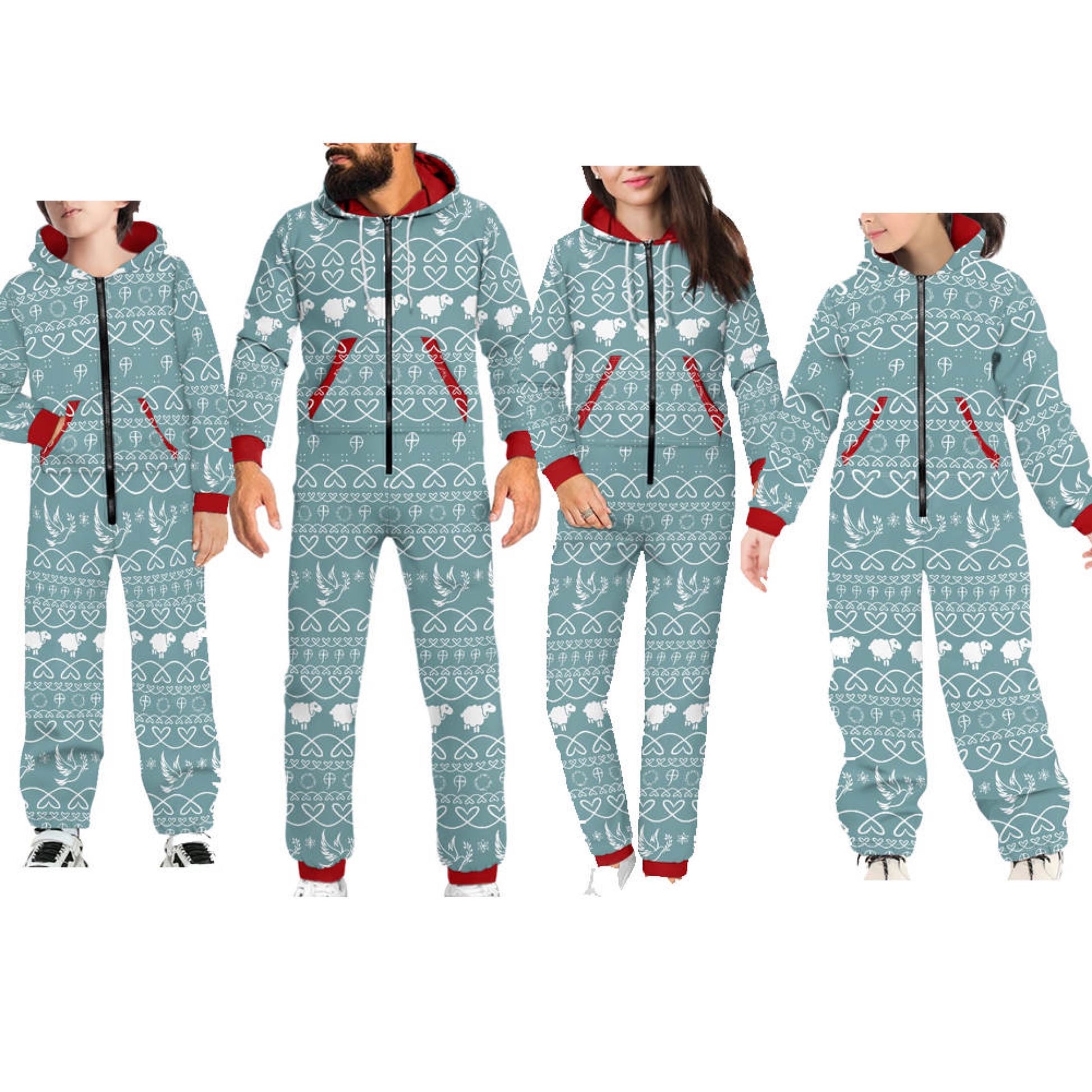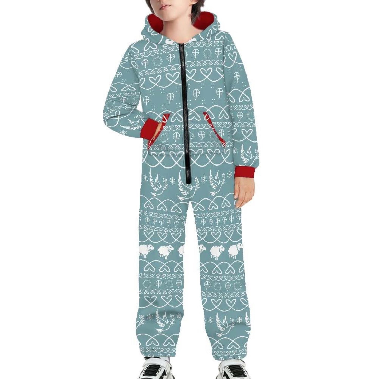 Christmas Jumpsuit Pajama sets with Sheep & Dove (Turquoise )
